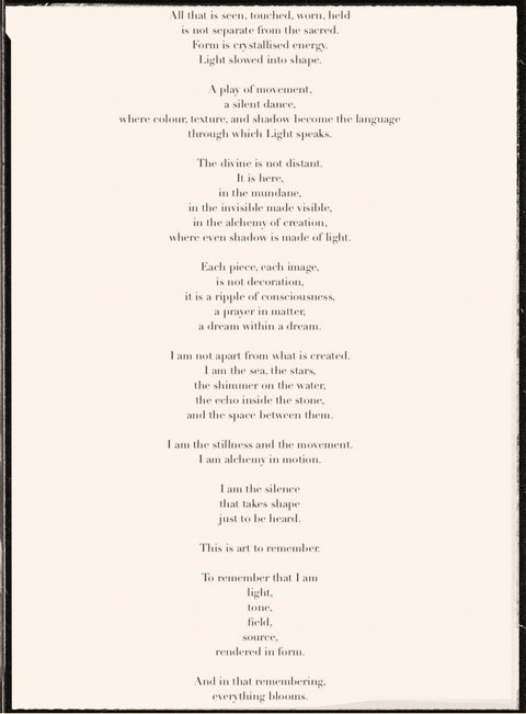 Step beyond the seams into an atelier of dreams —where craft becomes ritual, and imagination takes form in silk, wool, and light. Lucie Azari designs for those who seek beauty with meaning. Each piece is a portal —for self-discovery, for quiet rebellion, for the art of becoming. Rooted in couture tradition and guided by instinct, her work invites you to wear your story, your spirit, your strangeness—with elegance. This is clothing for the curious. For the few. For those who feel before they follow.
